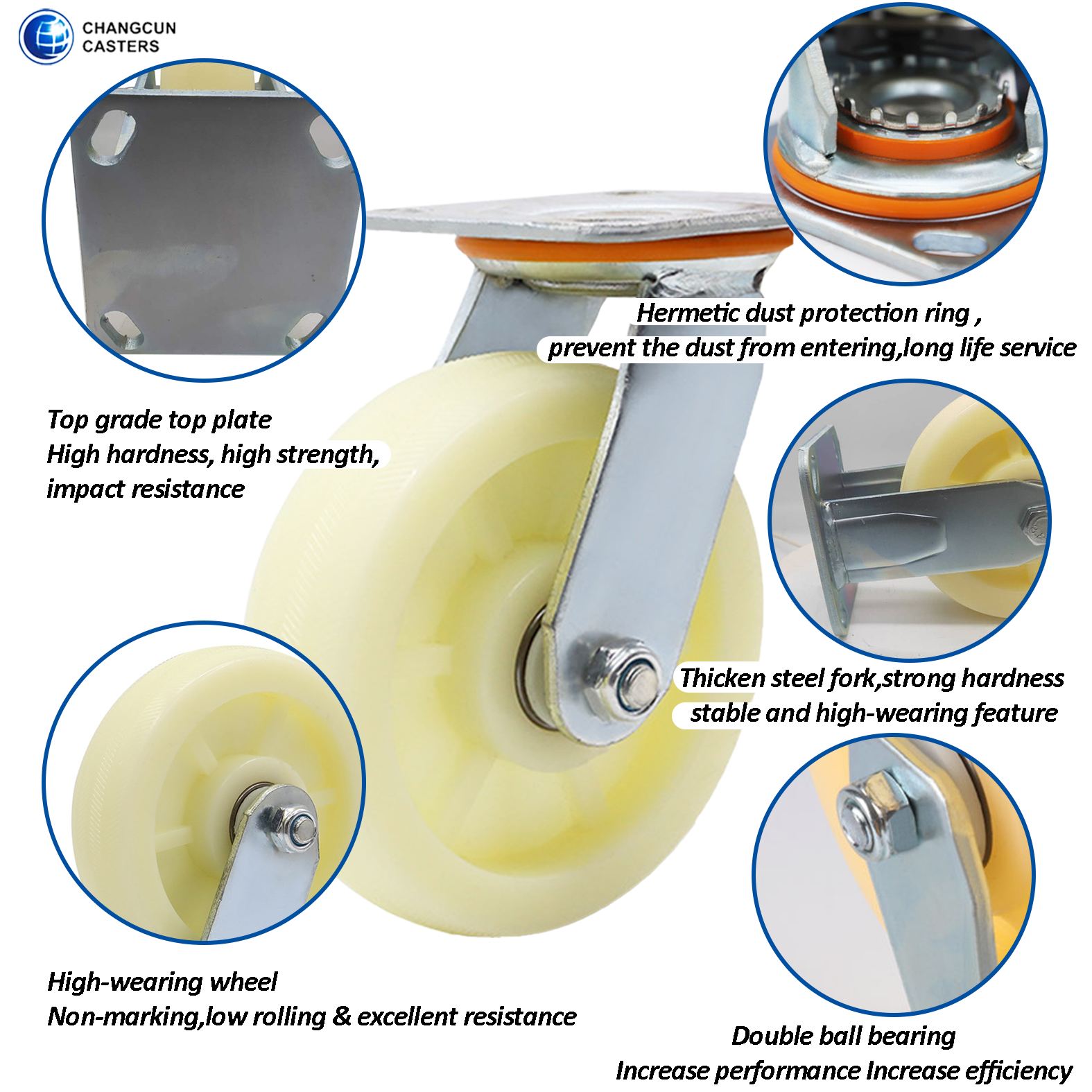 · Low Maintenance & Long Lifespan: Unlike pneumatic caster wheels that can puncture or steel caster wheels that can rust, nylon wheels are virtually maintenance-free. They retain their shape and integrity under heavy loads for years.